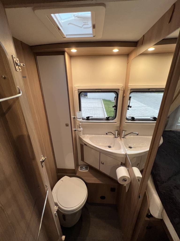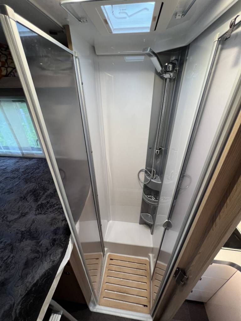 Az egyéni igényekre szabott fürdőszoba elegendő tárolóhelyet kínál mindennek, amire egy utazás során szüksége lehet. A külön zuhanyzó kompromisszumok nélküli kényelmet biztosít. Remek módja annak, hogy kipihenten kezdjük a napot.